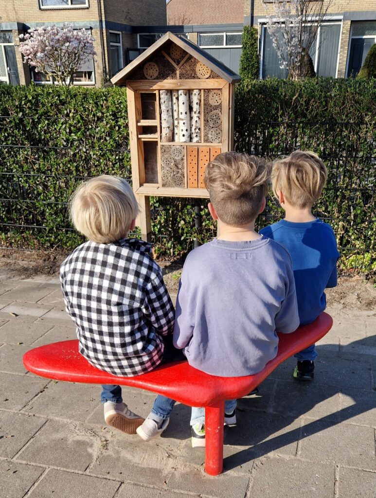 We hebben tijdens de themaweek insecten bekeken. Heerlijk buiten bij het insectenhotel.